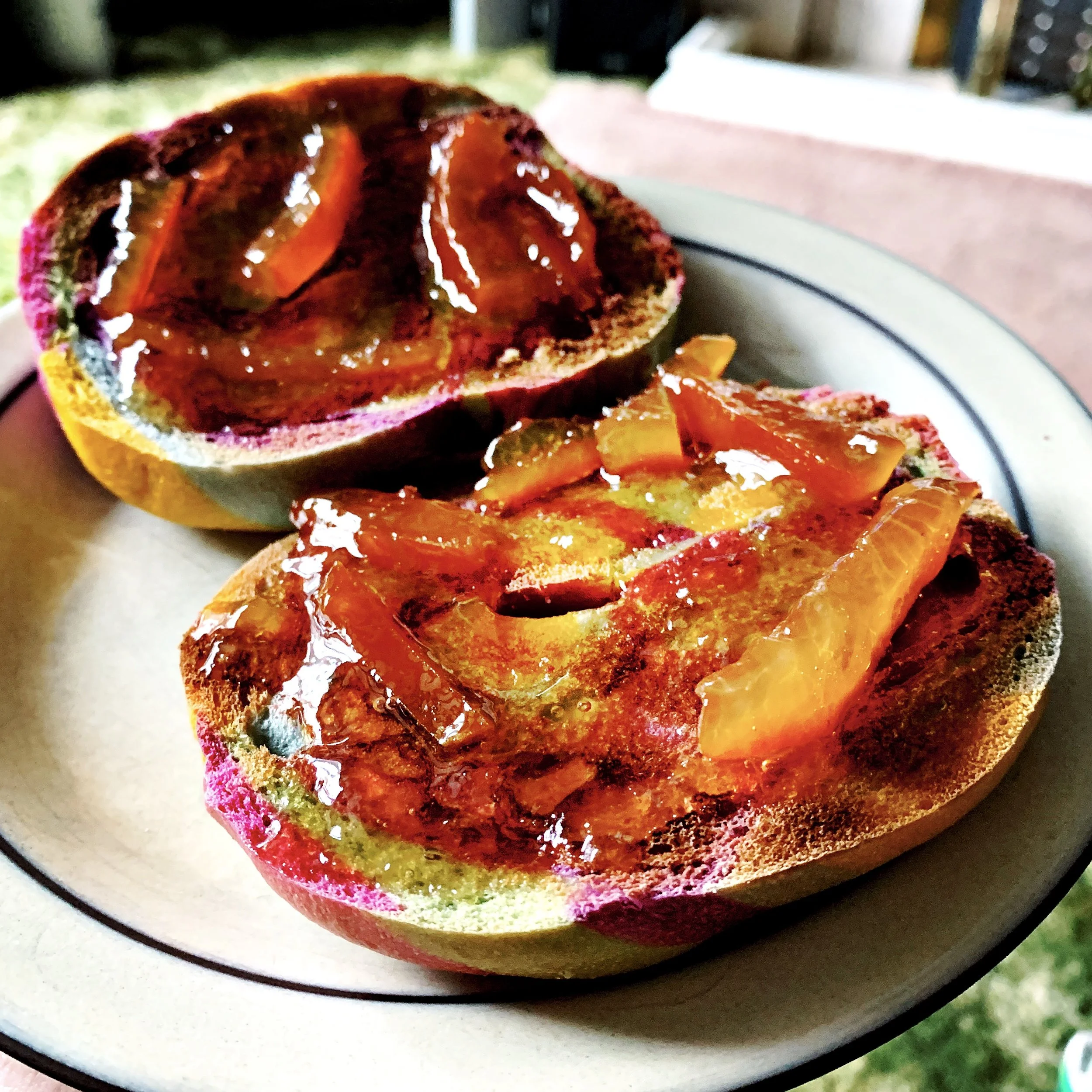 It has been a very Happy Birthday for me! I had a decent sleep, then for my breakfast I had my last rainbow bagel. While I drank my coffee, I opened my cards and presents from.Mommy and Daddy. They gave me a big bag full of knitting accoutrements, such as stitch holders, pins for various purposes, stitch markers, needle huggers, and two little notebooks for scribbles.