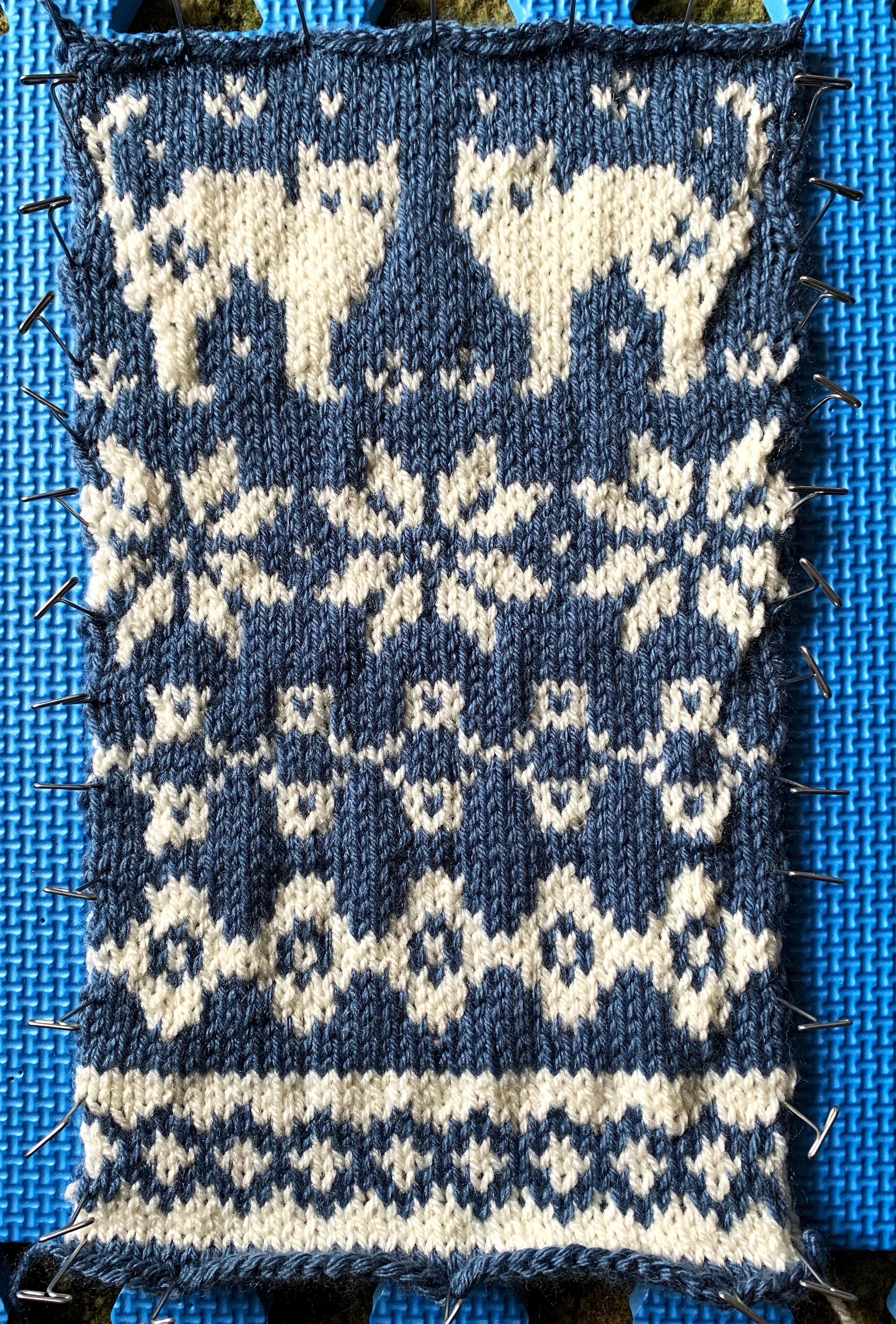 This morning, I did a blog post, and started up Fair Isle practise number twosie while watching Sunday Brunch and getting updates from Daddy. I've spent the afternoon quietly beavering away at it, having to constantly adjust for the blinding sun in my eyes, and the cataracts have been stupid today. It's just like trying to see through a thin veil of crap that you simply cannot wipe away. My appointment with Mr. Kolli has been put back by a fortnight, which doesn't help.