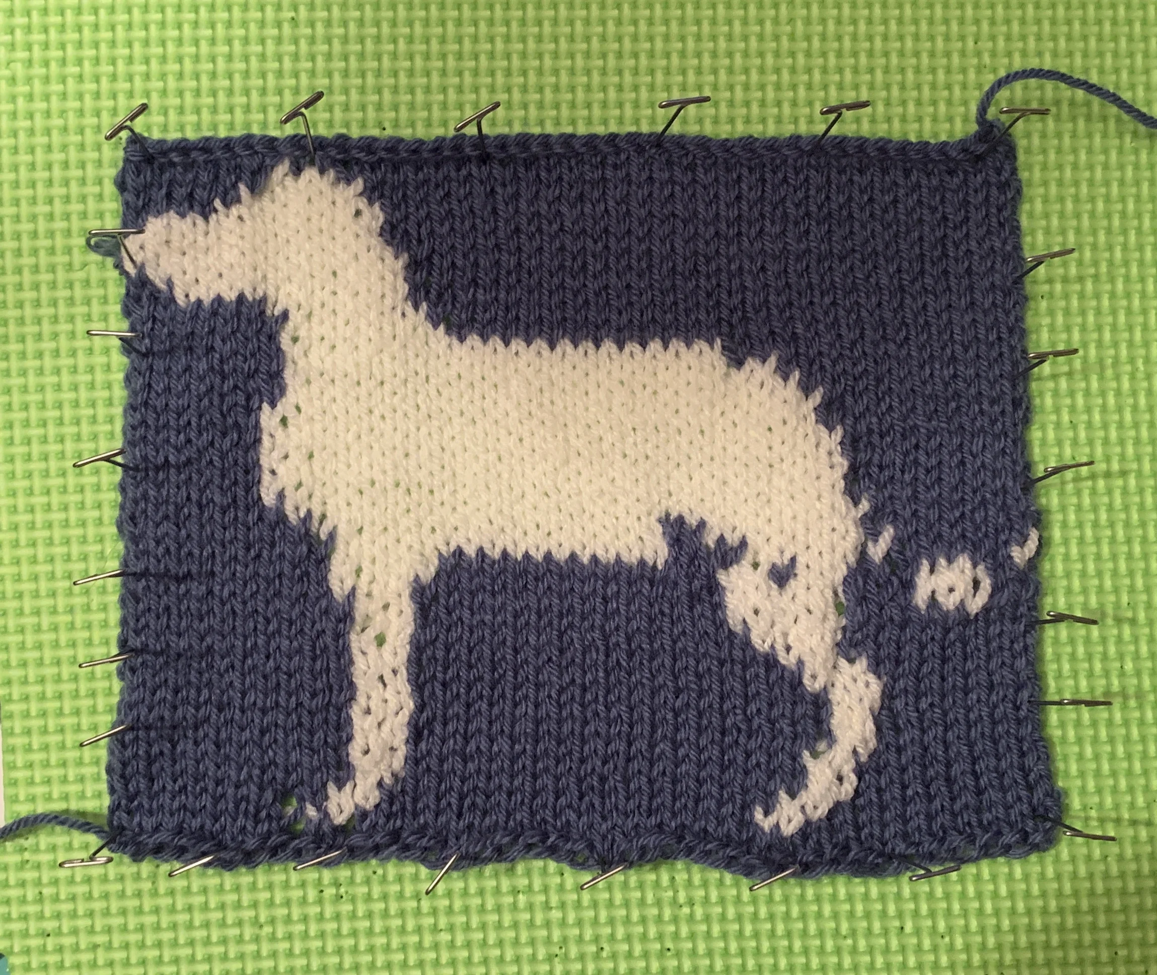 Well, sort of. This morning, I wrote up a blog post, then I chose a dog for my practise patch. I chose the labrador, because it seemed the simplest shape. I took a picture of the graph, printed it out, counted out the squares in each colour, and wrote myself a pattern. Unfortunately, during this process, I made a couple of mistakes, which led to me messing up the dog when I made it this afternoon.