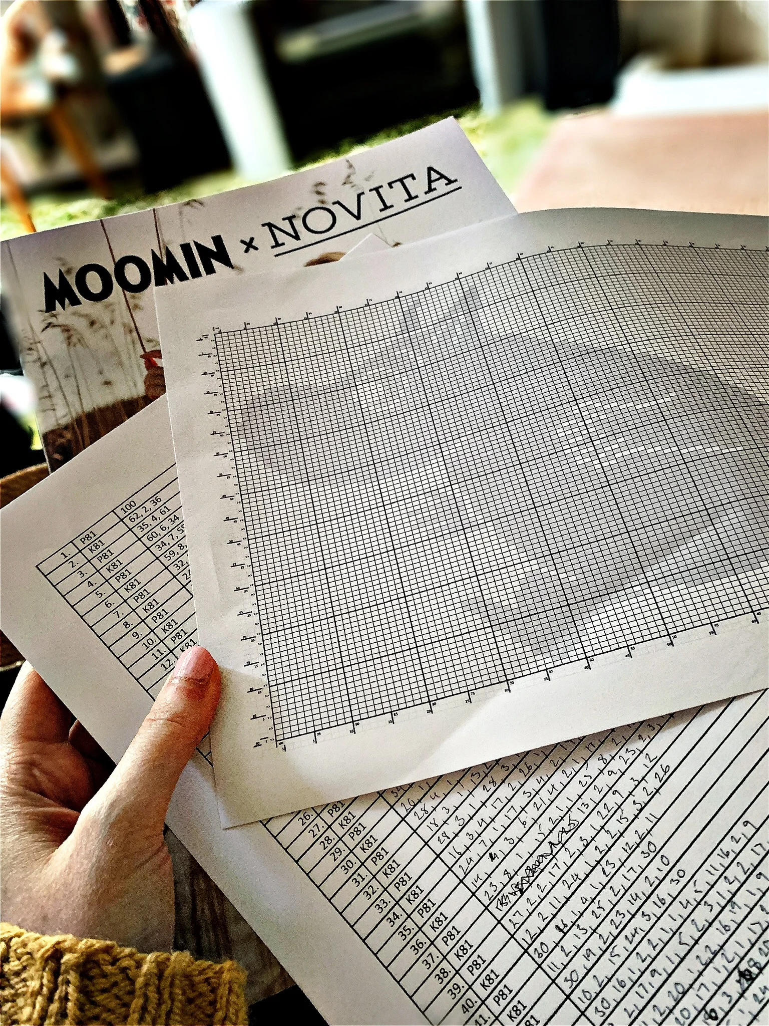 This morning, I wrote the Moomin intarsia graph out, which was tricky. Normally, I would do it from a print out and use a ruler, but the squares on the print out are just too small, so I printed out the Word document I'd been filling in, line by line, and hand-wrote it in there from zooming in on the Excel spreadsheet of the pattern. I then actually couldn't really read my handwriting, but I generally know the shapes of the numbers so it wasn't too much of an issue. Very occasionally my eyes would do a thing where it would all become clear for a moment - I don't know how - and I could see and read, but then I'd lose it again and we'd be back to blurry. So frustrating. Daddy offered to try and help, because he has done lots of spreadsheets in his time, bless him, but that was not really the part I was struggling with. And I think his handwriting is harder to read than mine.